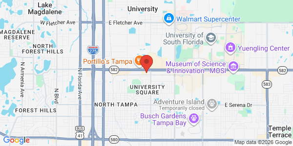 • Lage: in Nord-Tampa, direkt an der Hauptstraße Fowler Avenue und gegenüber der University of South Florida gelegen, 1,5km zu Busch Gardens Tampa Bay, 2km zu Adventure Island, 15km zum Florida Aquarium